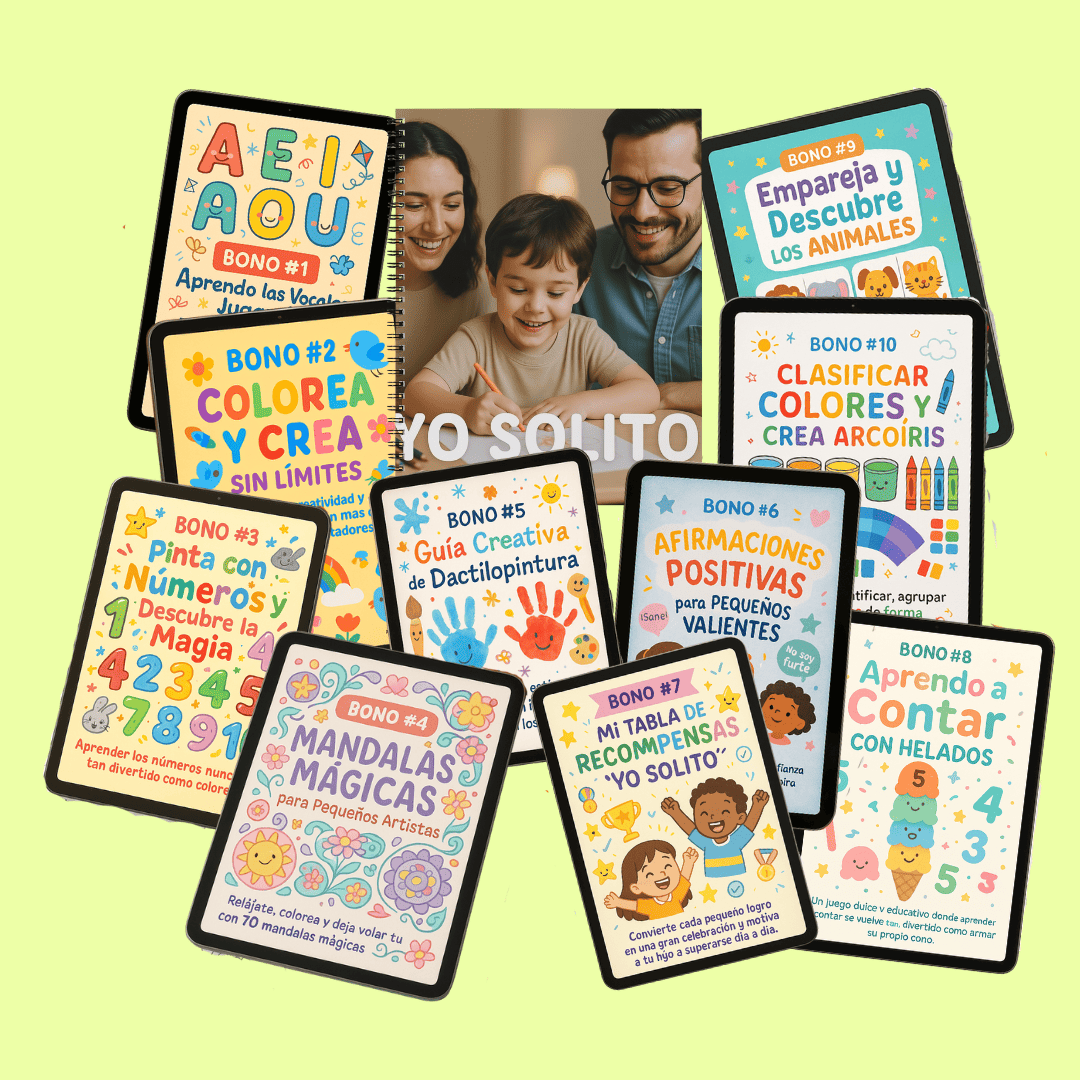 Con “Yo Solito”, tu hijo desarrollará su motricidad fina, concentración y autonomía mientras se divierte con más de 500 actividades imprimibles, pensadas para convertir los momentos de juego en aprendizaje real, sin pantallas, sin estrés y con resultados visibles desde los primeros días.